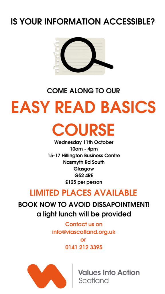 VIAS are excited to announce that we will be delivering an Easy Read Basics training course at our offices on the 11th of October!