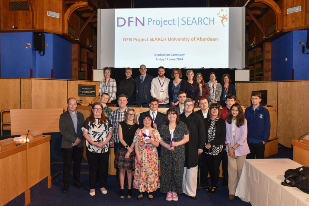 The ceremony also included contributions from the Co-Chairs of Values Into Action Scotland (VIAS), which holds the licence to operate the DFN Project SEARCH programme in Aberdeen. Norma Curran, Chief Executive, said: “Everyone at VIAS is hugely proud of the achievements of this year’s interns. Their growth as individuals and as role models has been inspirational. We are excited to see their next steps and wish them all well for a bright future. We are grateful to our partners at DFN Project SEARCH University of Aberdeen for making all of this possible for this inspirational group of young people”.